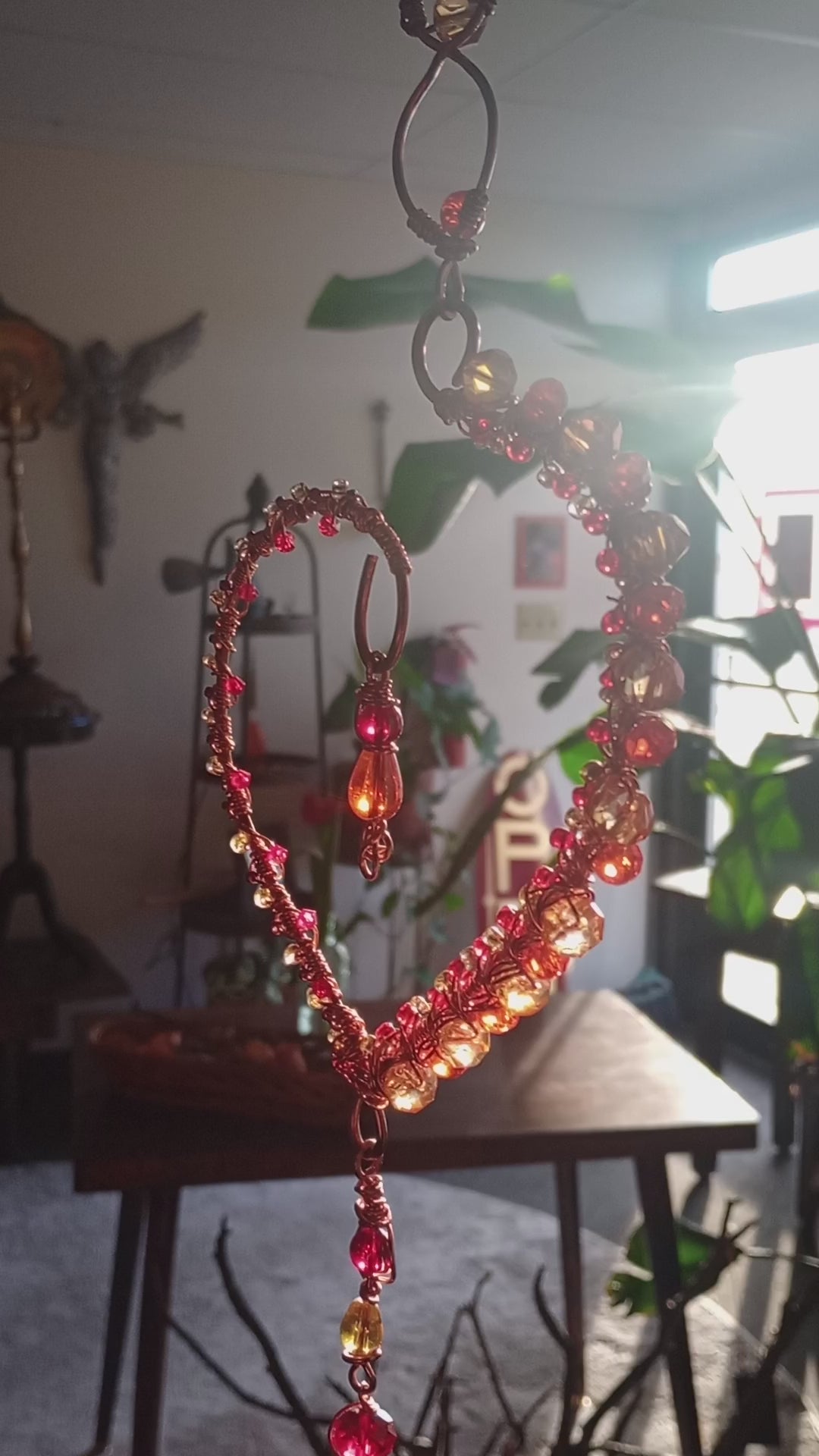 Weaved with fiery sunset colors on warm copper our crystal embellished Crimson Heart Suncatcher illuminates space with gentle bursts of warm glimmering light.