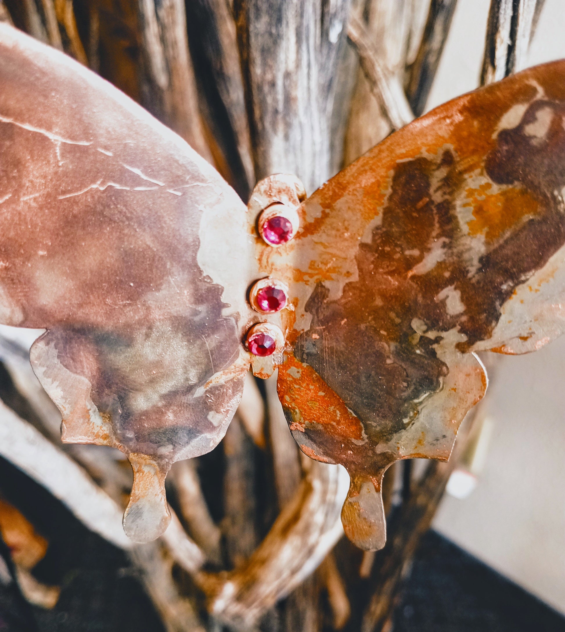 Our butterflies are hand cut from 24-gauge mild steel, flame finished with a rust patina.